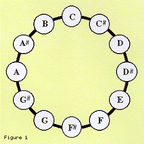 Based on these findings, the author conjectured that each listener develops a mental representation of a 'pitch class circle', in which tones are arranged in positions analogous to numbers on a clockface (see Figure 1). Tones in one region of the circle are heard as higher and tones in the opposite region are heard as lower. However, the orientation of this circle varies from one listener to another. It was further hypothesized that the orientation of the pitch class circle is acquired developmentally through exposure to speech produced by others. Such an acquired template could account for the striking geographical differences in perception of the tritone paradox, as well as the correlation with the pitch range of the listener's speaking voice.